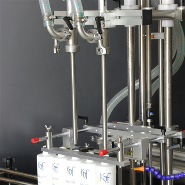 2. Sylinderen driver dykking av påfyllingsdysen og tilpasses med den varierende fyllhastigheten som kan redusere skumdannelse når du fyller, noe som kan unngå å forurense flaskene.