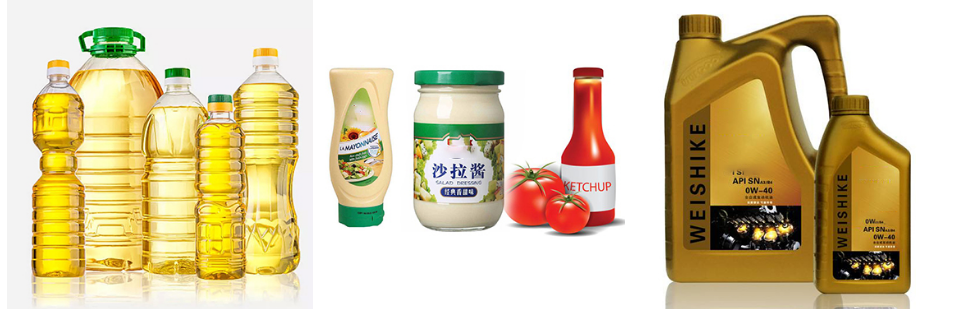 Spiselig olje (Sesam, oliven, peanøtt / blanding .etc) Ketchup, majones, chilisaus osv. Smøreolje + spesielle løsemidler.